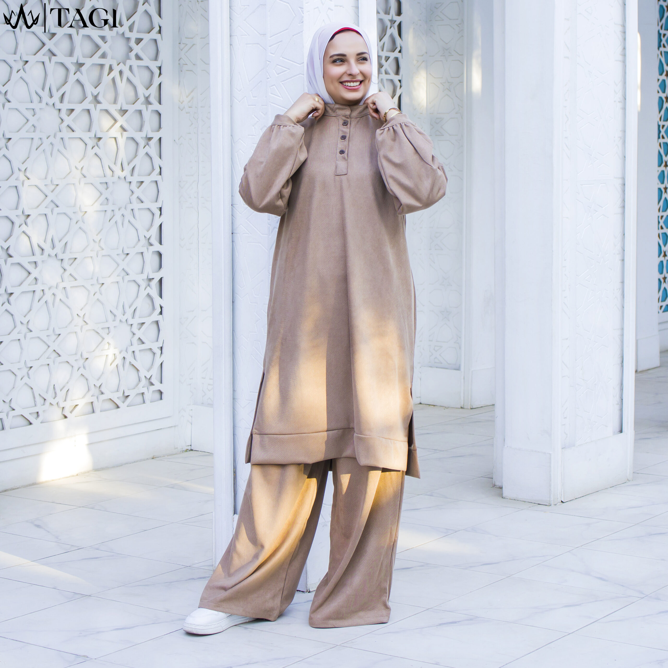 Fabric : Rib velvet خامة سويد مبرد طقم قطعتين تونيك وبنطلون بجيوب